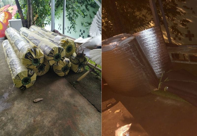 • Trải cỏ nhân tạo trên lớp xốp để tăng khả năng chống nóng và làm đẹp cho mái tôn