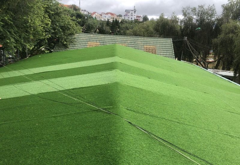 Thi công cỏ nhân tạo chống nóng mái nhà vườn hoa thành phố Đà Lạt
