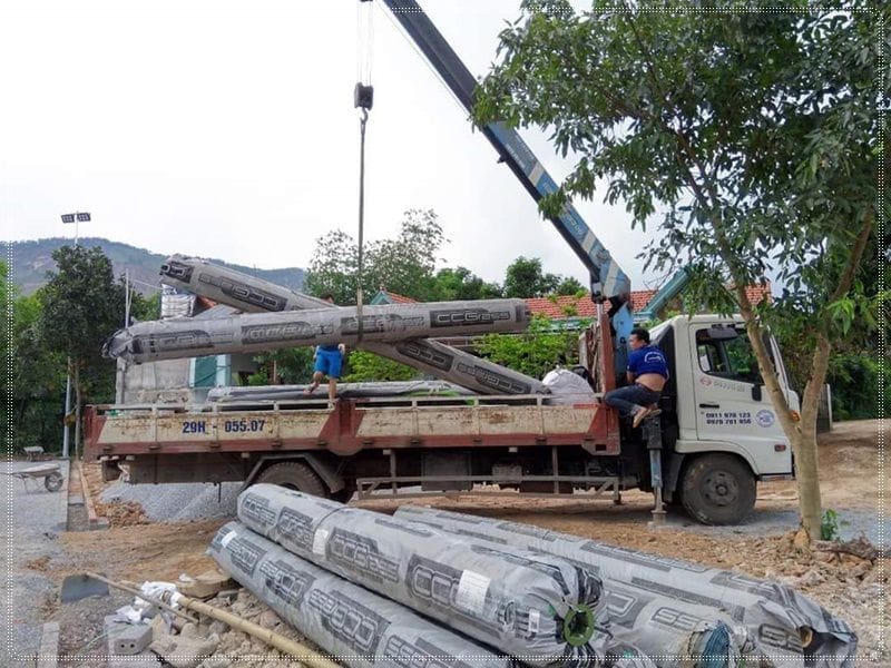 Đồng thời song song đó, hệ thống chiếu sáng mỗi trụ tương ứng với một bóng đèn > 200w để đảm bảo độ sáng cho sân – Thời gian thực hiện khoảng từ 2 đến 3 ngày